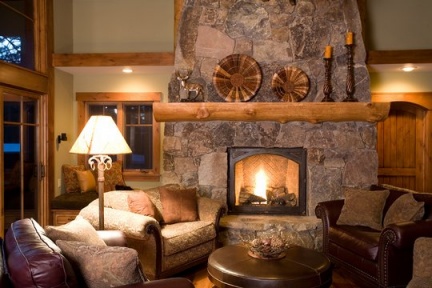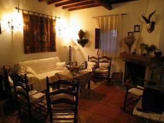 Elementos en las decoraciones son los pavimentos de madera, piedra, ladrillo o baldosas; junto con las chimeneas y el yeso rugoso en los techos con vigas de madera que aportan un intenso sabor campestre.